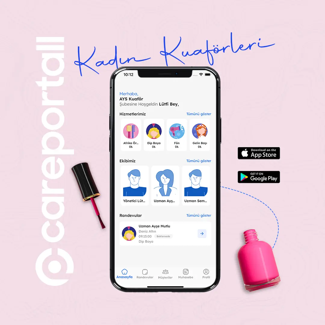 Care Portall: Kadın Kuaförleri için Profesyonel Hizmet YönetimiKadın kuaförlüğü, saç tasarımı ve bakımında estetik ve yenilikçi yaklaşımlarla öne çıkan bir sekt...