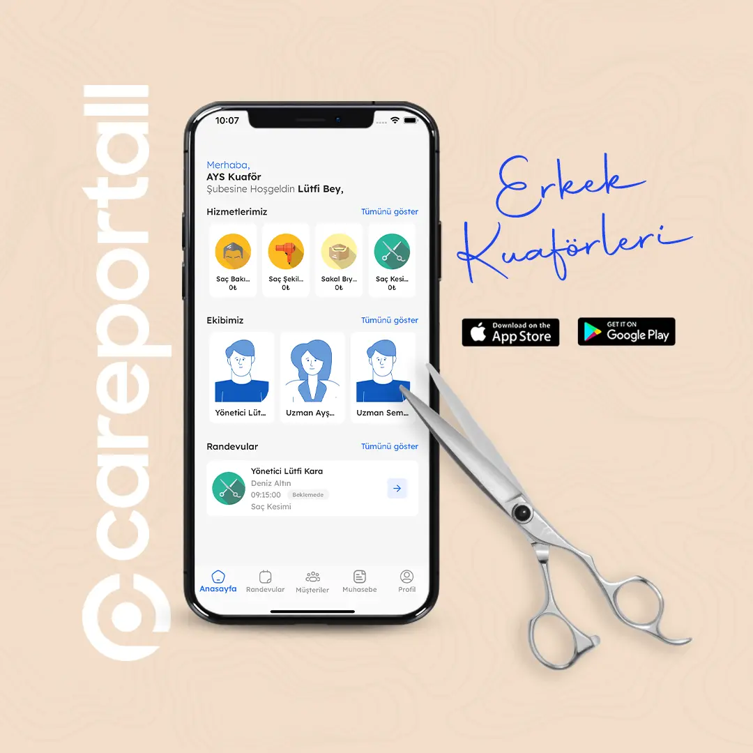 Care Portall: Erkek Kuaförleri için Profesyonel Hizmet YönetimiErkek kuaförlüğü, saç kesimi, sakal tasarımı ve kiÅŸisel bakım hizmetlerinde ustalık ve yenilikçi yaklaÅ...