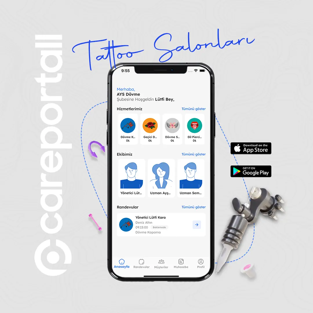 Care Portall: Dövme Salonları için Profesyonel Hizmet YönetimiDövme sanatı ve vücut süslemesi sektörü, özgün tasarımlar ve müşteri memnuniyetine odaklanarak bilinir....